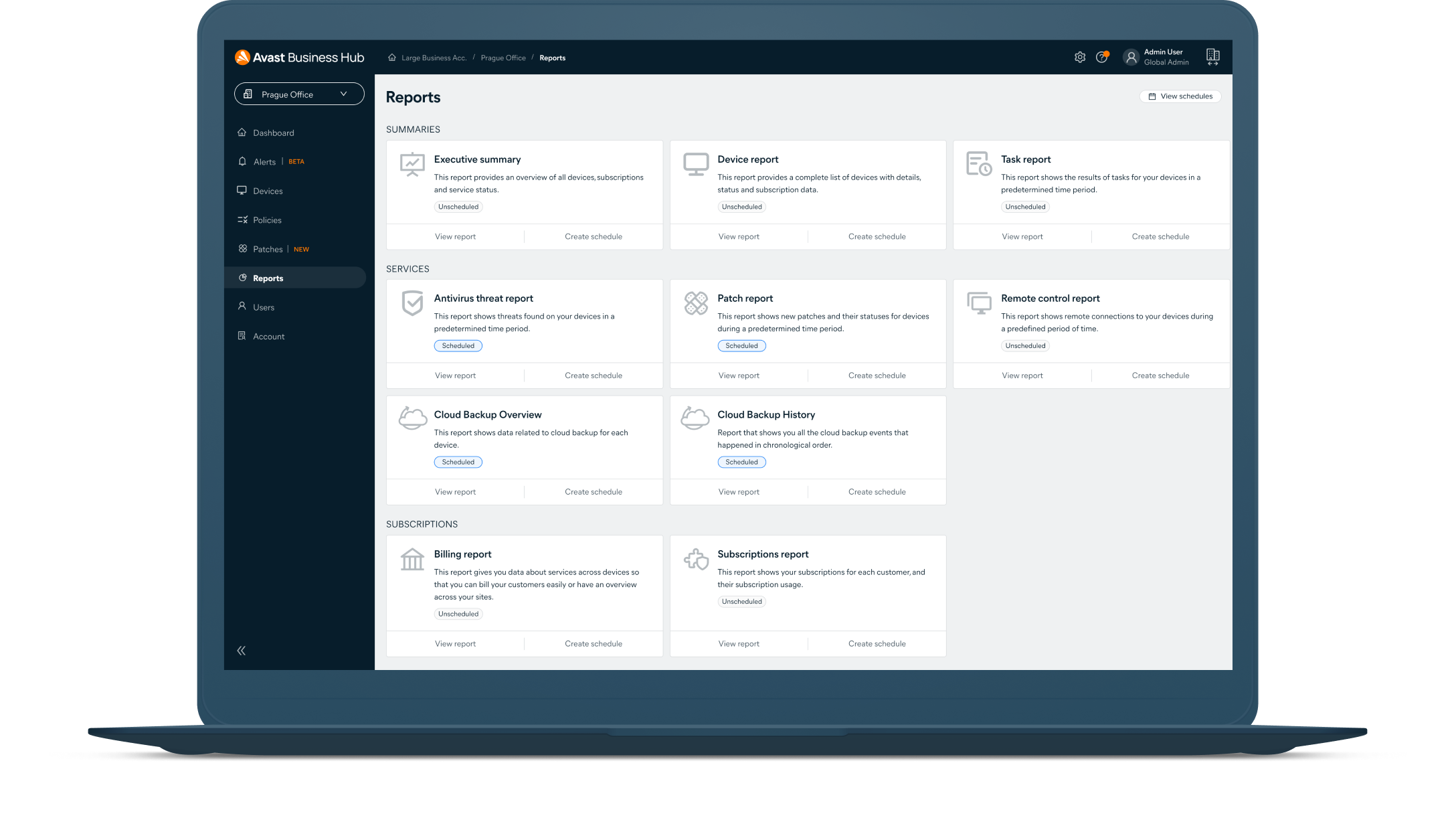 すべてのアバスト ビジネス ソリューションをプラットフォームで一元的に管理
