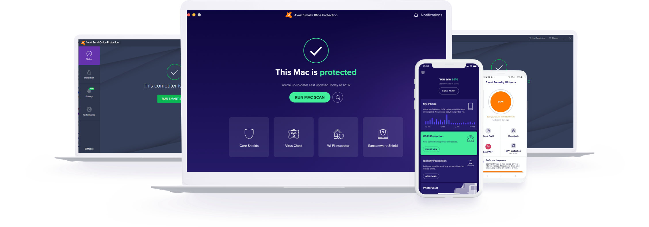 顧客データを取り扱い、サーバーのあるビジネスの場合、無料の消費者向けアンチウイルスよりも上のバージョンが必要です。当社のスモール ビジネス ソリューションはサーバーとエンドポイントの保護を提供します。また、従業員の皆さんが完全なデジタル プライバシーとセキュリティを獲得し、生産性を大幅に向上できるよう、アバスト ビジネス ソリューションは高度なセキュリティ、プライバシー、生産性向上機能を提供しています。また、オンライン管理プラットフォームも含まれており、脅威のリアルタイムな可視化、包括的なレポート、およびリモート管理機能を単一のプラットフォームから提供します。
