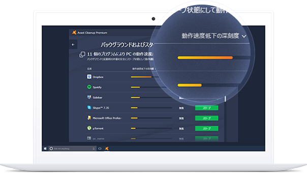 徐々に動作の遅くなるPCにあきらめを感じていませんか?アバストクリーンアップを使うと、動作速度を低下させる原因を取り除くことができます。