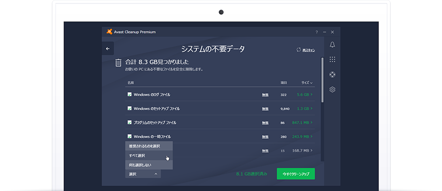 アバスト クリーンアップは PC のチューンアップに必要なあらゆる機能を備えています。