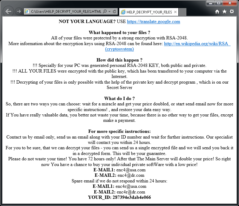 ファイルを暗号化すると、BadBlock は(Help Decrypt.html というファイルから)以下のいずれかのメッセージを表示します: